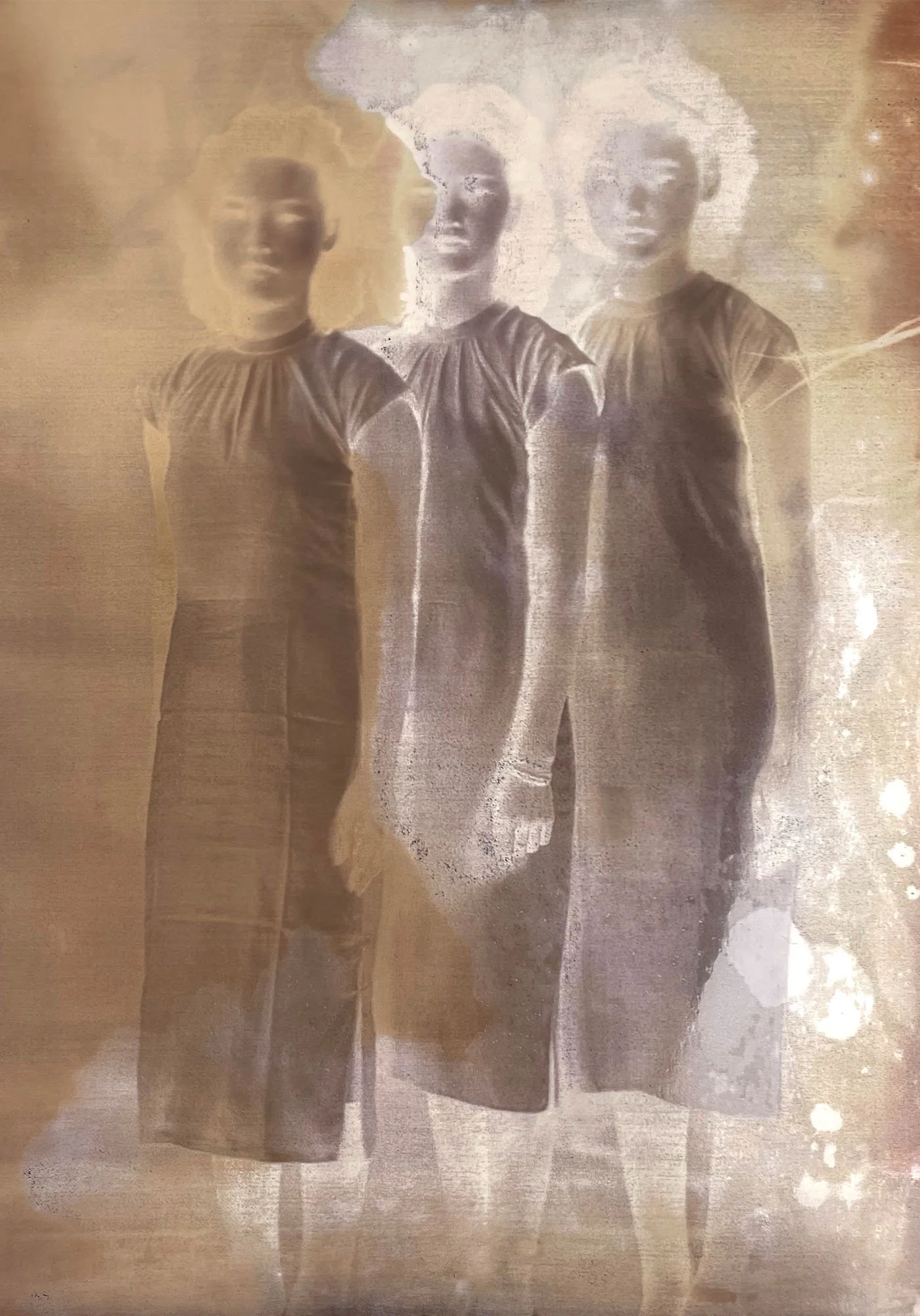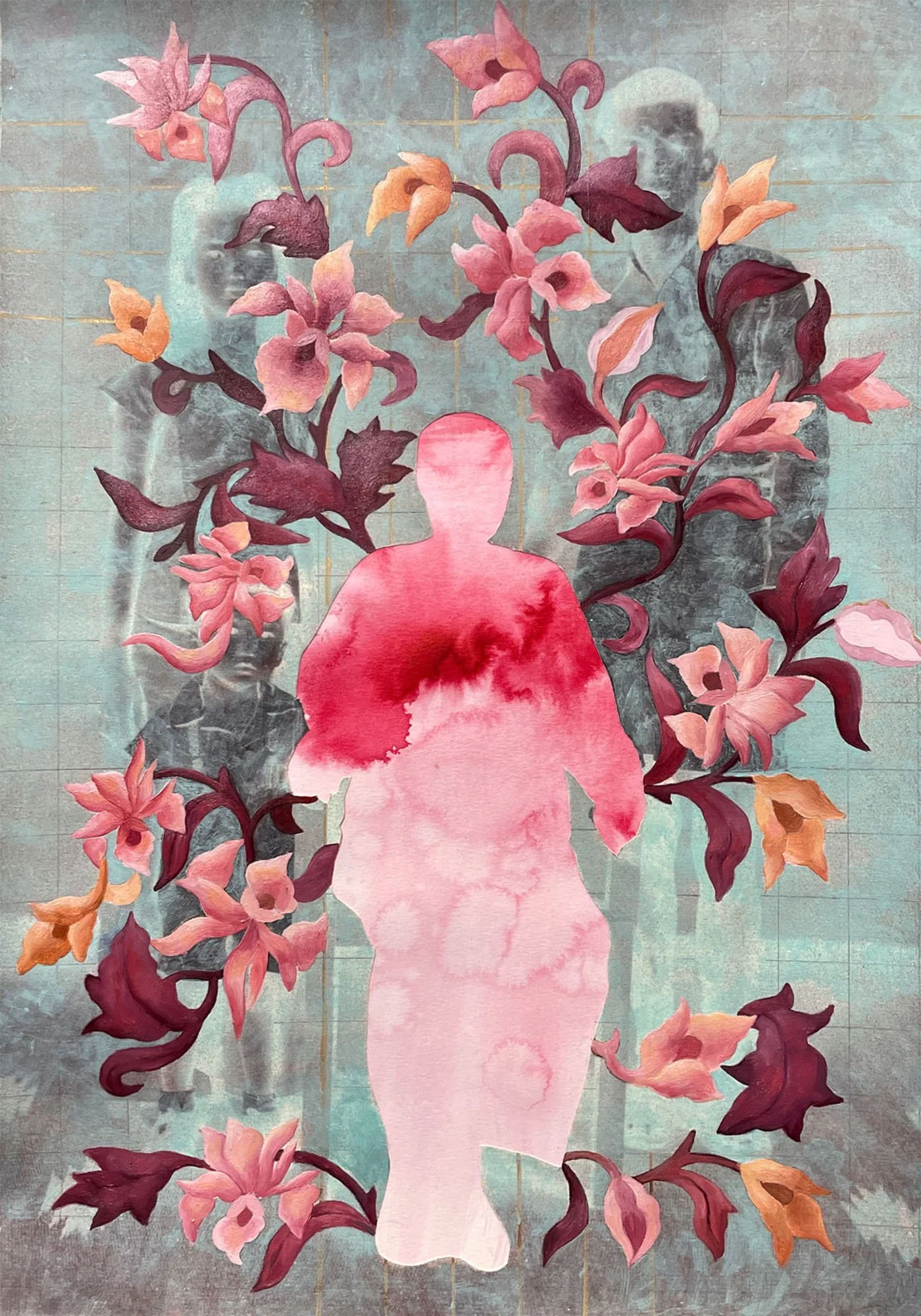 Muted Ancestors, 2022, photocopy, acrylic and oil paint on cartridge paper. 29.5 x 42cm