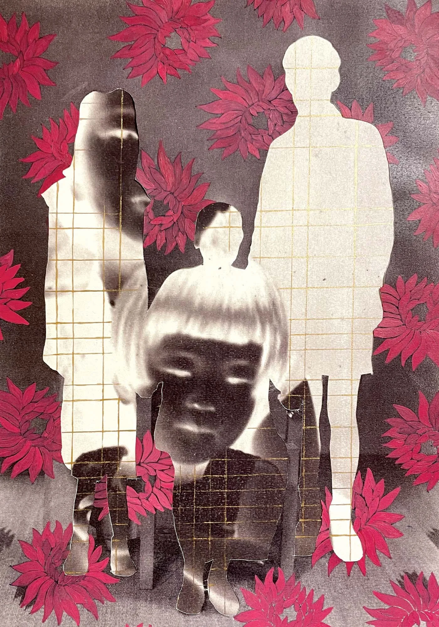 This series draws on manipulated photographs of my family and ancestors, which are torn, painted over, collaged, and stitched into. These interventions deliberately degrade the images, echoing the fragmentary nature of memory and cultural inheritance within migrant histories.
